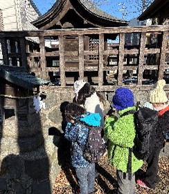 1月6日(火)は初詣に行きました。ステップワゴンチームは湊方面の「上下浜神社」と「小坂観音」。「上下浜神社」は道を挟んで2つの社がありましたが、それぞれにお参りして交替で鈴を鳴らしてきました。「小坂観音」は諏訪湖が見える少し高台の神社。車を降りてからの道のりは山道で少し長かったのですが「探検みたいだね!」とみんなで楽しんで歩いていきました。お参りの後は諏訪湖を眺めながら、わくわくステーションの場所や自分の家などを探したりもしました。