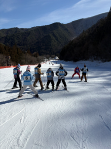 また、1月17日(土)、31日(土)にはわくわくはそり遊び、ムーンショットはスキー教室を行いました。こちらも年中行事の1つですが、冬を肌で感じながら思い切り体を動かしてきました。そり遊びでは支配人の方に安全な滑り方を教えていただき、ルールを守りながら楽しむことができました。スキー教室では何度も行っている6年生や中学生は、とても上手でこれまでの積み重ねを感じました。一方で初めて挑戦する子も多く、思うように止まれなかったり、バランスを取ることが難しかったりとドキドキの連続でした。それでも最後まであきらめず、がんばる姿が印象的でした。冬キャンプでは今回の経験を生かしてほしいと思います。
