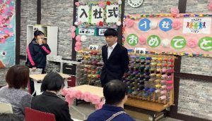 就労継続支援B型事業所グラン・ジュテあい工房では毎年4月1日に入社式を行っています。今年も諏訪支援学校を卒業した2人の若者が入社しました。グラン・ジュテあい工房は多機能型事業所として定員10名の小規模事業所で運営しています。設立5年目になり、いよいよともそだちプラネットの放課後等デイサービスで経験を積んだ人たちがメンバーの半数以上になりました。児童期から10年以上かけて育んできたことがジュテを舞台に繰り広げる準備が整ってきたということになります。人数も増えて、毎日ほぼ9名で仕事をしています。
