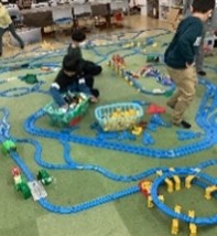 わくわくに戻ってきてから午後はみんなでプラレールを使って教室いっぱいに電車の旅を再現しました。お友だちと相談しながら線路を伸ばして最後に電車を走らせました。みんな夢中になってとっても楽しそうでした!【鈴木】